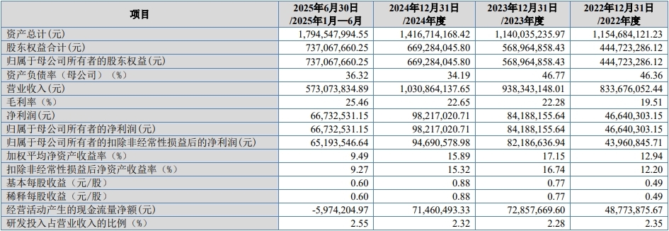 2022年-2024年及2025年1-6月期间,南特科技的营业收入分别为83,367.61万元、93,834.31万元和103,086.41万元;分别实现净利润/归属于母公司所有者的净利润分别为4,664.03万元、8,418.82万元、9,821.70万元;扣除非经常性损益后的净利润分别为4,396.08万元、8,218.66万元和9,469.06万元。
