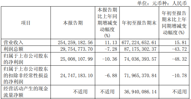 昨晚赛恩斯披露的三季度财报显示,今年前9个月公司总营收6.77亿元,相比去年同期增长了15.81%,归属上市公司股东净利润为0.74亿元,同比下滑48.32%;非经常性损益部分净利润约为0.72亿元,同比减少10.78%;经营活动产生的现金流量净额达到了0.37亿元。
