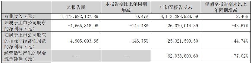 2025年第三季度,英唐智控营业收入147,400.63万元,同比微增0.47%;归属于母公司股东的净利润亏损4,66.58万元,较上年同期(即2024年的同期)减少5.93%。扣除非经常性损益项目的净利则亏损5,01.61万元,较去年同期缩减37.09%。