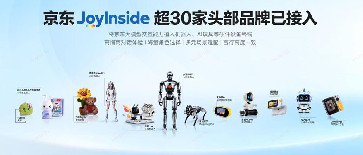 人机交互及智能硬件让体验更亲近。 JoyInside附加终端为设备注入高情商交互功能。这些设备包括AI玩具及各类机器人。JoyInside已连接芙崽、火火兔等30余个品牌,据统计,在京东618期间销量较之前增长超2倍,与JoyInside合作的对话量增长至120%。北京小学生朵朵拥有一台接入了JoyInside的智能机器人。她将自己的绘画技巧教给机器人的同时,也教会机器如何用更精准的话语夸赞其绘画细节。据悉,今年京东首发的人型机器人“松延小布米”在JoyInside加持下具备有记忆及共情能力。AI版Labubu芙崽通过情感识别实现个性化互动。自6月开始预售后,销量较上个月增长25倍之多