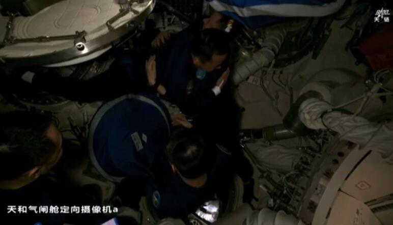 两名指令长继三年前首次“太空会师”后再度相聚“天宫”。随后,两个航天员乘组拍下“全家福”,共同向牵挂他们的全国人民报平安。