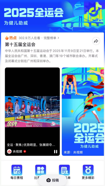 热门话题“2025年全运会”抖音首页
