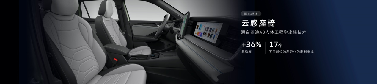 在舒适体验方面,全新探岳L搭载了专为中国用户研发的云感座椅,其柔软度提升了36%,乘坐时可以完全放松。除了柔软外,这款座椅还采用了与奥迪A8同款的人体工学设计,在靠背和大腿部分分别提供17个不同位置的差异化定制支撑,即便长途驾驶也不容易感到疲惫,为更多用户带来超越期待的舒适体验。