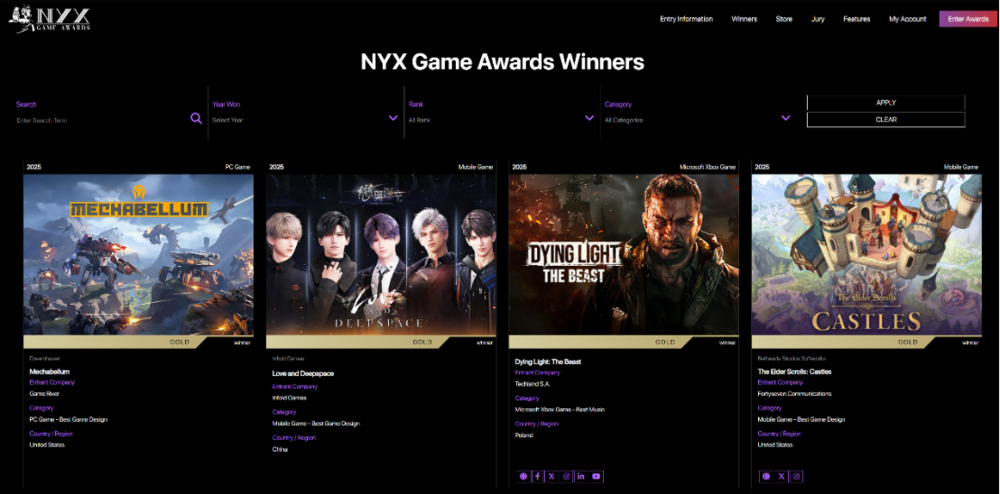 得益于《无限暖暖》基于UE5引擎跨端开发的优势及《恋与深空》3D化创新的表现,《叠纸科技》在2025年取得了最多国际奖项,在苹果大奖、科隆最佳奖到纽约市电影节四项大奖中,凭借“还可以这样”的创造力拓宽了游戏领域边界,并向全世界证明了女性力量在商业上的潜力。
