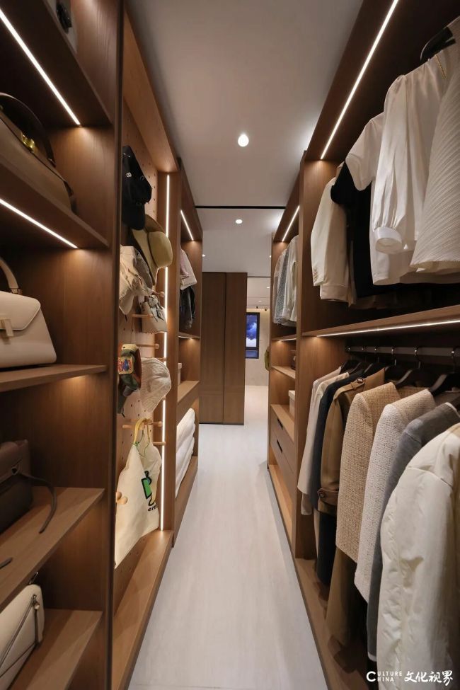 要解决换季时的衣服和被褥的存储问题,中海提供了专门的设计,具有多种功能性的可变衣帽间可以合理组织衣物叠放。此外还特别设计了空间来存放贵重的物品,保证学生的个人财物得到妥善安排与保管;同时也考虑到了安全因素,在衣帽间内设置有锁闭的柜子来确保小海同学的财物隐私与安全性。