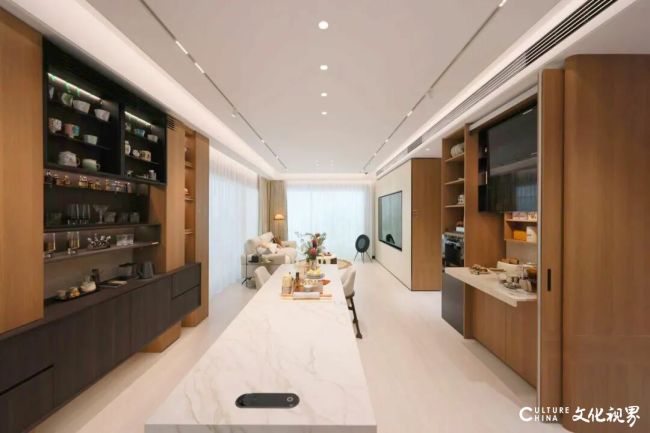 除日常餐厅之外,好房子还推出了变通岛台,无论是包饺子等烹饪准备情景,亦或是聚餐、品茗,都容易驾驭自如;早餐台也提供了多种使用功能,可隐藏式收纳,轻松抵御小家电凌乱,在小小海同学的语音引导下开启完美的一天。