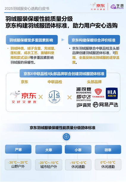 冬季即将来临,保暖需求大增。京东服饰发布《2025年羽绒服安心选购白皮书》,深入探索羽绒服保暖关键点,并结合“京东安心品质标准”以及羽绒服装的等级分类,《白皮书》为消费者选购提供详细的参考指引。同日,京东还举办了羽绒服超级品类日活动,从11月4日晚8时持续到11月7日凌晨两点,顾客将享受满299减30、满599减60以及满999减100等优惠券,并有机会以更低价格购得优质羽绒服。